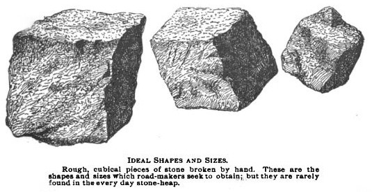 2. Строить дорогу только из гравия. Первый слой ~10см выкладывался из камней размером в 3 дюйма. Банку сгущенки помните? Вот примерно такое. Второй - ~10см из гравия в 1,5 дюйма и третий - 5см из мелкого гравия размером в 0,75 дюйма. При этом важную роль играла форма, размер и сорт гравия. которые должны были постоянно контролироваться дорожными строителями.