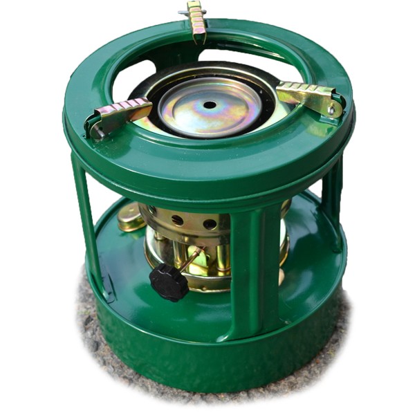 Китайский керогаз. Обычно более компактный, но сохраняющий все проблемы керогазов (долгий коптящий розжиг, необходимость возни с газосмесителем (у самых дешевых, как на картинке, он еще и снимается по частям), снова копоть по поводу и без и все еще дорогой керосин.
